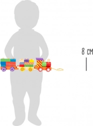Acest tren de tras small foot, plin de culoare, este un companion grozav pentru copiii de la 3 ani în sus. Cuburile din lemn de forme diferite permit asamblarea și reconfigurarea, susținând creativitatea și motricitatea fină. Locomotiva și cele două vagoane pot fi ușor cuplate, iar copiii pot prinde sfoara și plimba întreaga garnitură prin cameră.