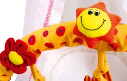 Designul elegant al animalelor colorate menține atenția copilului și stimulează dezvoltarea tactilă.