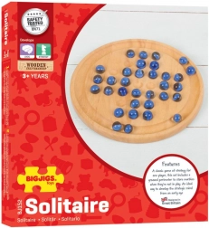 Descoperă distracția atemporală cu solitarul din lemn BIGJIGS TOYS. Bilele albastre lucioase și tabla circulară finisată cu grijă creează un joc logic elegant care îți pune la încercare istețimea și răbdarea. Scopul este ca, sărind peste bile pe rând, să rămână pe tablă o singură bilă.