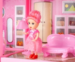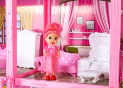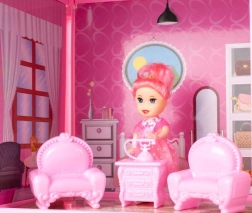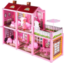 Căsuța roz fermecătoare pentru păpuși, cu o înălțime de 44 cm, îi va încânta pe toți copiii prin dotările bogate și atenția la detalii. Include o păpușă de 10 cm cu membre mobile, mobilier pentru dormitor și living și balcon cu umbrelă de soare. Căsuța este realizată din plastic de calitate și oferă montaj ușor și numeroase posibilități pentru joacă creativă.