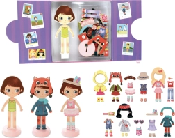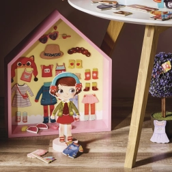 Păpușa magnetică pentru îmbrăcat Chloe este jucăria ideală pentru copiii care iubesc moda și stilul. Suportul stabil din lemn asigură îmbrăcarea comodă și prezentarea ținutelor. Datorită setului bogat de piese magnetice, se pot combina nenumărate look-uri – de la rochițe și paltonașe până la căciuli și pantofi.
