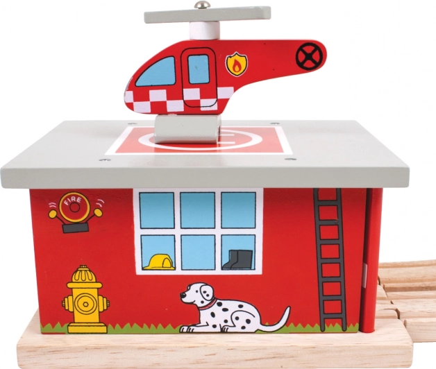 Extinde lumea trenulețelor copiilor cu un depozit de pompieri cu heliport plin de acțiune. Imprimeuri detaliate, construcție cu trecere și elicopter inclus, toate invită la povești captivante și misiuni de salvare. Stația este realizată cu grijă din lemn de calitate și respectă standardele europene de siguranță.