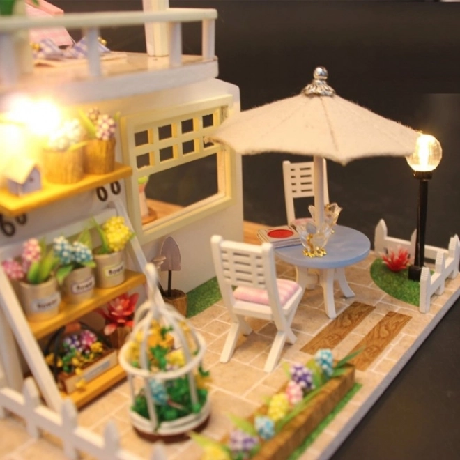 Căsuță din lemn pentru păpuși, elegantă, cu două etaje, de asamblat, cu iluminare LED. Mini-mobilierul și accesoriile realizate cu precizie asigură distracție pentru ore îndelungate, iar după finalizare devine o decorațiune stilată pentru camera copilului. Bateriile nu sunt incluse.