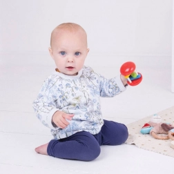 Cilindrul curcubeu Bigjigs Baby este o zornăitoare din lemn atemporală, care atrage prin culori intense și sunet plăcut. Trei blocuri colorate, la rostogolire sau scuturare, se leagănă și lovesc ușor suporturile, motivând copilul să continue explorarea, prinderea și mișcarea.