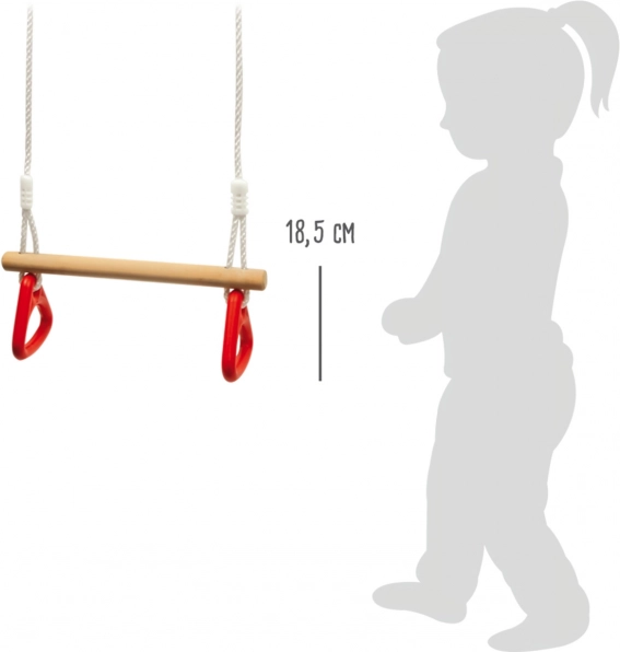Bara din lemn cu două mânere din plastic permite legănarea, așezarea și tracțiunile. Ideală pentru întărirea părții superioare a corpului și dezvoltarea coordonării.