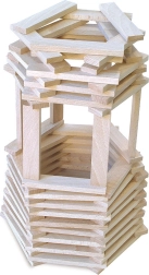 Acest set de construcție din lemn atemporal oferă copiilor posibilități nelimitate de creație – de la turnuri și poduri până la modele arhitecturale originale. Dimensiunile uniforme ale pieselor (10,5 × 2 × 0,7 cm) permit construcții stabile fără elemente de îmbinare. Datorită execuției naturale, jocul este nu doar distractiv, ci și educativ.