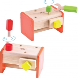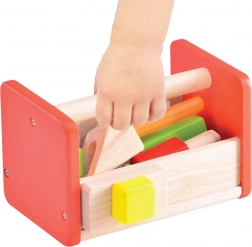 Setul este realizat din lemn masiv rezistent și lemn-plastic, garantând durabilitate și siguranță în timpul jocului. Combinația atrăgătoare dintre aspectul natural și culorile intense va captiva privirea fiecărui copil. Copiii învață să sorteze uneltele după scop, iar datorită construcției compacte, setul economisește și spațiu.