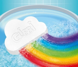 Aduceți bucurie și culoare în baia copiilor. Glibbi Boom curcubeu, după introducerea în cadă, eliberează treptat un efect superb, multicolor, care transformă apa într-un spectacol jucăuș al curcubeului. Distracție fără compromisuri la capitolul curățenie și siguranță.