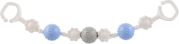 Două cleme robuste la capete permit montarea rapidă pe cărucior sau pe pătuț și asigură o poziție stabilă a jucăriei chiar și în timpul deplasării.
