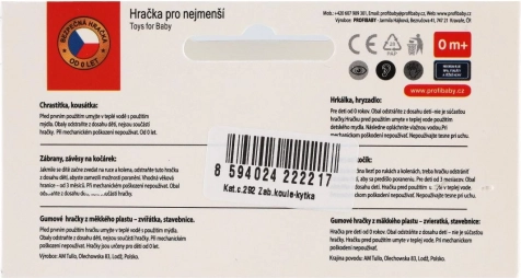 Datorită clemelor/ochiurilor la ambele capete, jucăria se fixează rapid pe cărucior, pe scaunul auto sau pe marginea pătuțului. Materialul este ușor și rezistent, ușor de întreținut. Culorile pot varia, însă este păstrată combinația atrăgătoare de elemente contrastante pentru stimulare vizuală și tactilă.