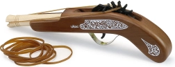 Pistol de lemn pirat de la marca Vilac este jucăria ideală pentru micii entuziaști ai aventurilor de pirat. Permite copiilor să exerseze țintirea cu ajutorul elasticelor sigure, care sunt incluse în pachet.