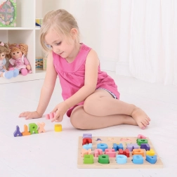 Mare alfabet din lemn Bigjigs oferă copiilor o oportunitate unică de a învăța literele printr-o abordare jucăușă și educativă. Fiecare literă este colorată vesel, ceea ce face mai ușoară recunoașterea și memorarea. Puzzle-ul este fabricat din materiale de înaltă calitate, fiind sigur și ideal pentru mâinile mici ale copiilor.
