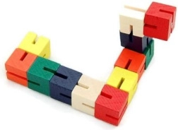 Puzzle-ul colorat din lemn în formă de șarpe oferă nenumărate opțiuni pentru ca copiii să își exploreze creativitatea. Prin rotirea și inversarea segmentelor individuale, își dezvoltă îndemânarea și abilitățile motorii fine. Jucăria este ideală pentru călătorii, datorită dimensiunii sale de buzunar, copiii o pot avea mereu la îndemână. Blocurile din lemn sunt fixate ferm cu o bandă elastică, asigurând durabilitatea și siguranța.