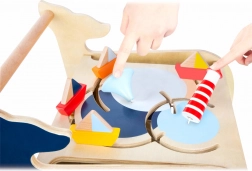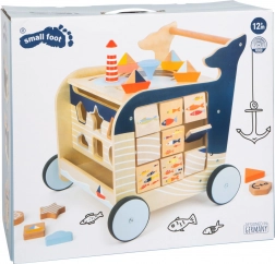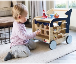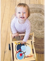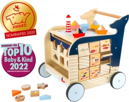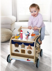 Porniți într-o explorare cu umblătorul de lemn în formă de balenă. Acest umblător nu doar ajută copiii să facă primii pași, dar oferă și diferite jucării interactive, care sprijină dezvoltarea motricității.