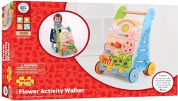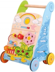 Construcția robustă din lemn, mânerul sigur și roțile colorate susțin o mișcare sigură și încrezătoare a micuților.