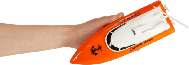 Telecomanda ergonomică se potrivește perfect în mână și oferă control fiabil al bărcii pe o distanță de până la 20 de metri.