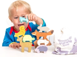 Stivuirea animalelor în turn susține coordonarea mână–ochi, precizia prinderii și jocul imaginativ. Activitate ideală pentru toddleri.