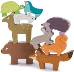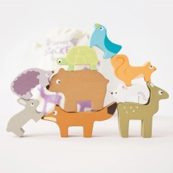Acest puzzle din lemn cu animale ale pădurii din colecția PETILOU este conceput pentru micii exploratori. Copiii pot stivui vulpea, iepurele, ariciul, ursul, șoarecele, țestoasa, veverița, puiul de căprioară și păsăreaua într-un turn amuzant, exersând echilibrul și observând cum turnul crește – și, din când în când, cade cu zâmbetul pe buze. Datorită dimensiunii plăcute, figurinele sunt perfecte pentru mânuțele copiilor.
