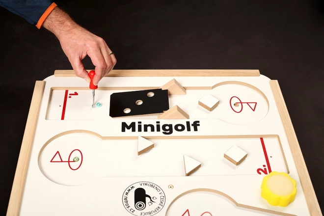 Minigolful de masă aduce o distracție originală pentru copii și adulți. Patru piste cu obstacole pe ventuze permit poziționarea liberă și combinații nesfârșite. Fiecare joc este diferit, antrenează atenția, răbdarea și motricitatea fină. Datorită materialelor robuste este ideal pentru joc frecvent acasă și în școli.