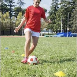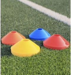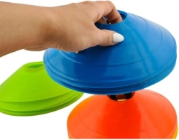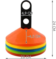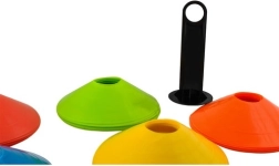 Setul de conuri de antrenament cu profil redus este ideal pentru fotbal, atletism, fitness și orele de educație fizică. Cele cinci culori intense (galben, portocaliu, roșu, verde, albastru) permit marcarea clară a zonelor, traseelor și stațiilor de exerciții, sporind siguranța și claritatea antrenamentului.
