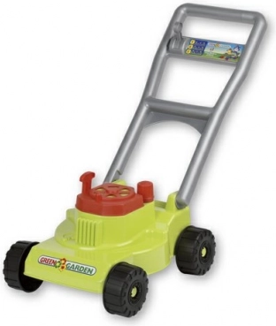 Mașina de tuns iarba este oferită în două variante de culori, adăugând la atractivitate. Este realizată din plastic robust și sigur, rezistent și ușor de manevrat. Pe mânerul rabatabil este plasată o manetă mobilă, deși fără funcție reală, aduce o experiență de joc mai autentică.
