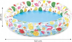Piscina cu dimensiuni 122x25 cm oferă un spațiu perfect pentru distracția și răcorirea copiilor.