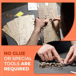Asamblarea este precisă și distractivă datorită celor 400 de piese tăiate cu exactitate și instrucțiunilor detaliate. Modelul oferă posibilitatea conectării modulare – uniți două până la patru piste și creați un ansamblu mecanic sincronizat, plin de dinamism și competiție alături de prieteni.