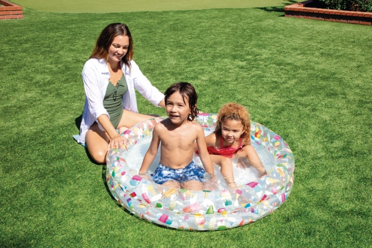 Diametrul de 122 cm și înălțimea de 25 cm oferă suficient spațiu pentru joacă, menținând în același timp apa la un nivel sigur de până la 14 cm pentru o răcorire plăcută.