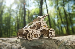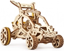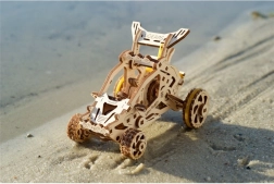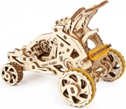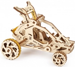 Mini buggy UGEARS este un kit mecanic distractiv și ingenios din lemn natural, care îmbină materialele tradiționale cu ingineria modernă. Datorită pieselor decupate cu precizie, se potrivește perfect, iar după asamblare prezintă o mișcare lină a roților și a angrenajelor.