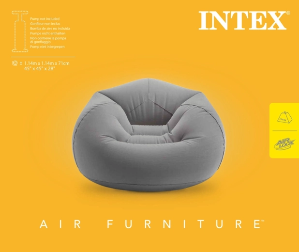 Datorită construcției gonflabile, fotoliul este ideal pentru living, camera studențească, cabană sau zona de relaxare din birou. Se umflă și se dezumflă ușor, astfel că îl poți transporta și depozita fără efort. Finisajul gri se potrivește majorității decorurilor și evidențiază liniile curate ale unui stil modern de locuire.