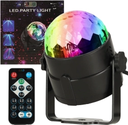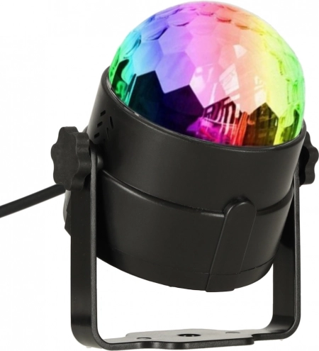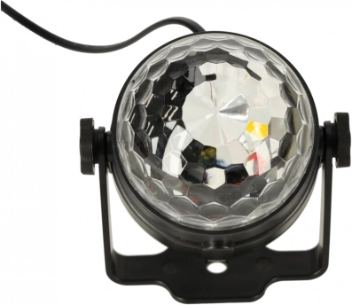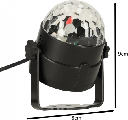 Sfera disco utilizează LED-uri 3x1W care creează o gamă largă de efecte de culoare.