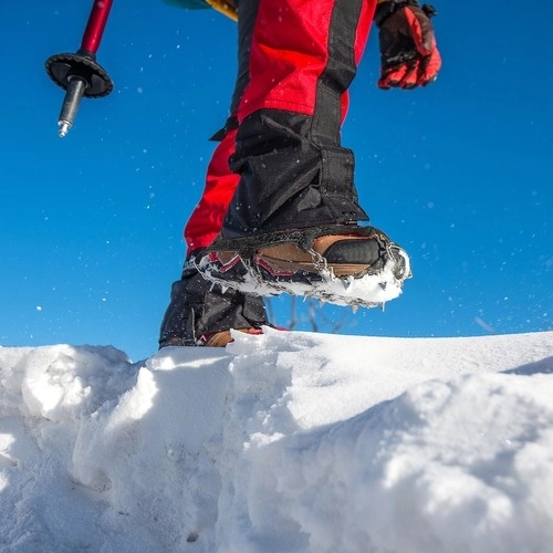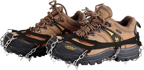 Fiecare crampón are 8 țepi poziționați strategic, uniți cu lanțuri din oțel inoxidabil, pentru tracțiune maximă pe suprafețe înghețate și alunecoase.