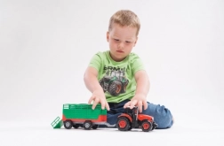 Acest tractor Zetor din plastic, detaliat și cu benă, este o alegere excelentă pentru copiii de la 3 ani în sus. Datorită mecanismului inerțial pornește ușor, iar butoanele activează sunete reale de motor și lumini pentru un joc mai autentic. Remorca detașabilă permite transportul de fân, animăluțe sau alte încărcături și stimulează imaginația copiilor în scenarii de fermă.