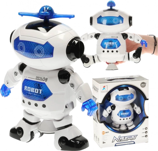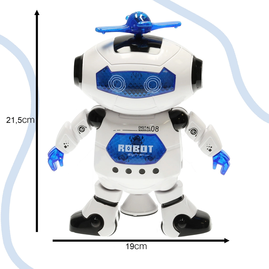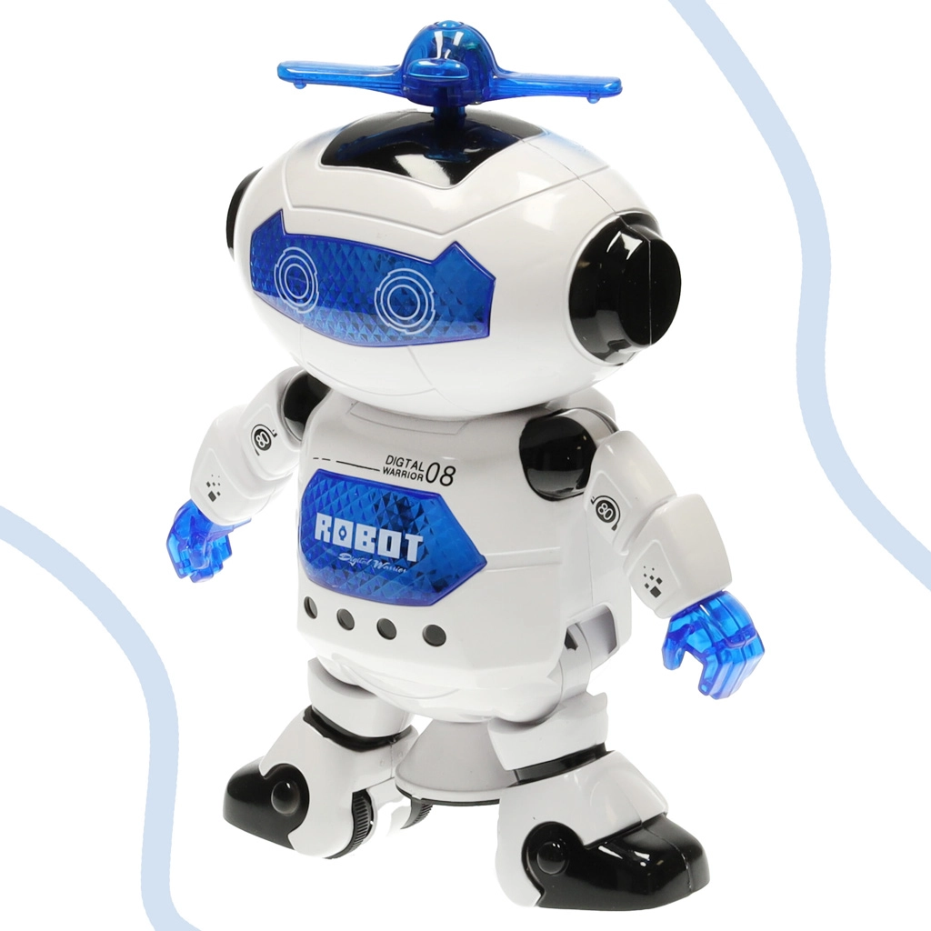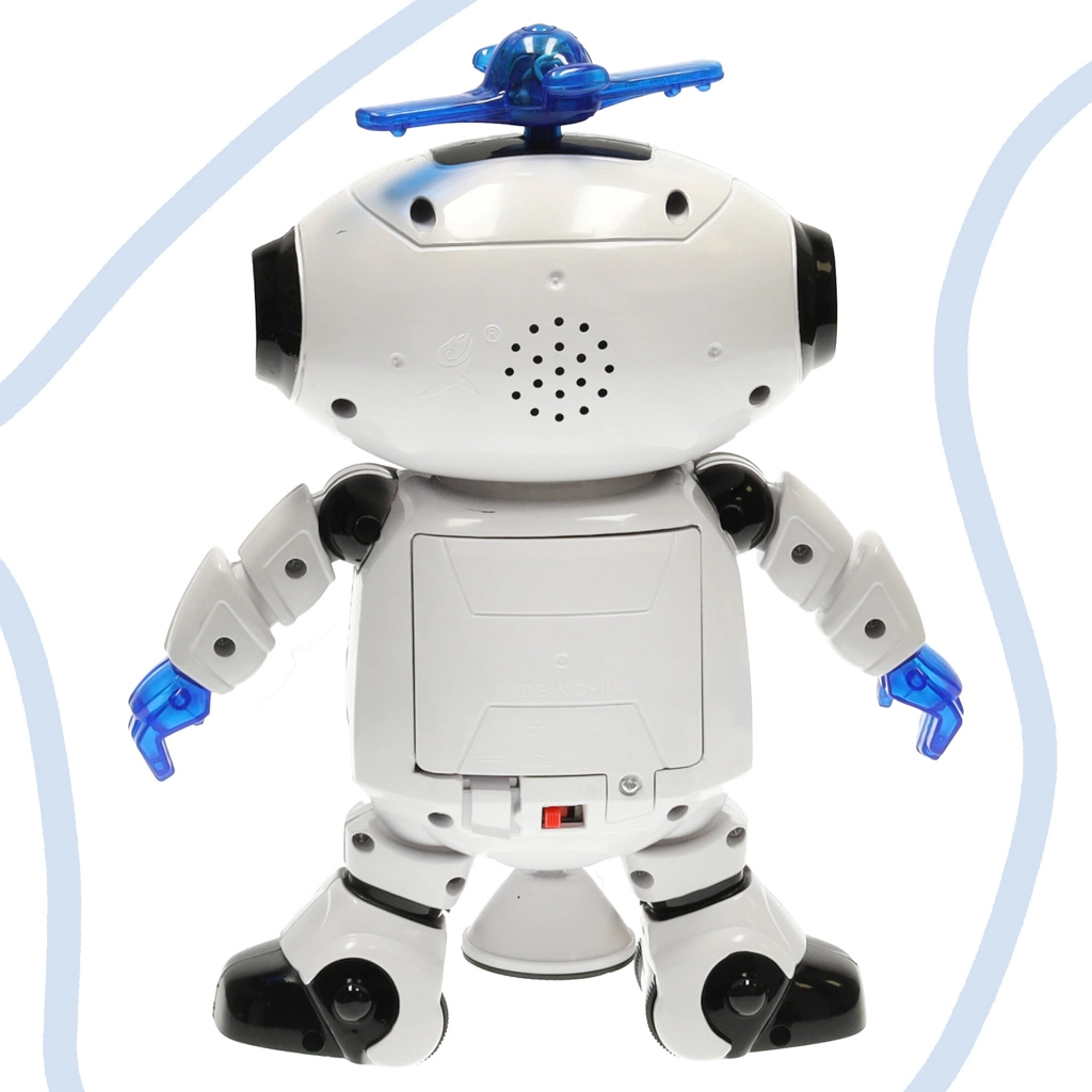 Robotul interactiv dansator ANDROID 360 este partenerul perfect pentru micii exploratori. Datorită efectelor luminoase și sonore, animează orice cameră de copii și stimulează mișcarea și imaginația. Robotul se poate roti la 360°, merge și își poate mișca brațele și picioarele.