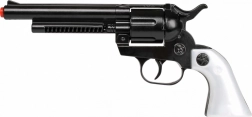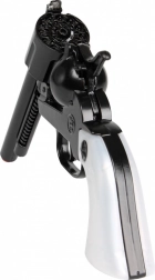 Revolver de cowboy – din metal, negru pentru capse – douăsprezece focuri. Dimensiunea revolverului: 24,5 × 11 cm. Fabricat în Spania.