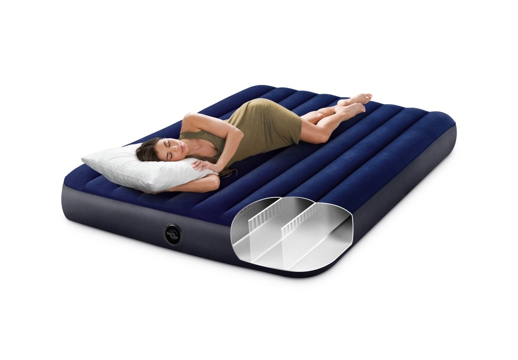 Bucură-te de odihnă confortabilă pe salteaua dublă INTEX cu suprafață flocată (din velur), plăcută la atingere și care ajută la menținerea cearșafului la loc. Salteaua este fabricată din PVC durabil și, prin dimensiunile sale, este ideală pentru oaspeți, rulotă sau camping.