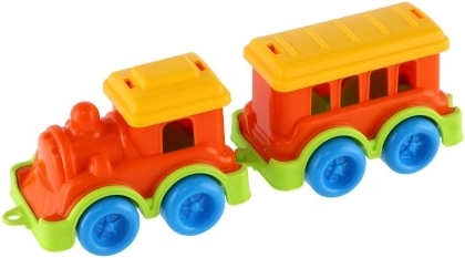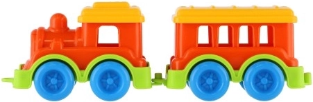 Acest trenulet de plastic este realizat in culori vii care atrag atentia copiilor si sprijina stimularea vizuala.
