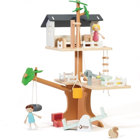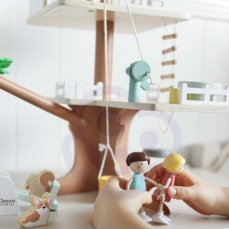 Căsuța în copac Classic World îi invită pe copii într-o lume a fanteziei și poveștilor. Construcția pe două niveluri cu garduri, scară și o căsuță mică oferă numeroase scenarii – de la ridicarea comorilor cu ajutorul scripetelui mobil cu găleată până la legănat pe leagăne și joaca cu animăluțe. Setul este ideal pentru dezvoltarea motricității fine, a creativității și a abilităților sociale în jocul împreună.