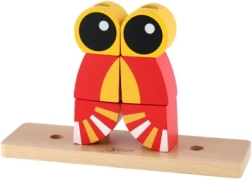 Acest puzzle colorat din lemn în formă de leu oferă copiilor o joacă sigură și cu sens. Piesele în culori vii se înșiră pe tije în baza de lemn, susținând precizia prizei și antrenând gândirea logică. Datorită celor cinci carduri față–verso, copiii pot urma modele sau își pot crea propriile combinații.