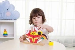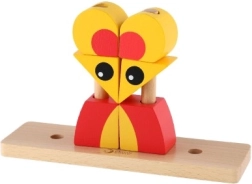 Jucăria educativă este realizată din lemn de calitate, cu suprafață netedă și bază rezistentă. Este ideală pentru primele noțiuni despre forme și culori, exersează percepția spațială și răbdarea. Potrivită pentru joaca acasă și pentru grădinițe.