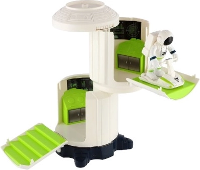 Pe acoperișul stației se află o coardă spațială, datorită căreia cosmonautul poate porni în siguranță într-o „plimbare spațială”. Setul include un loc de parcare pentru planorul spațial și posibilitatea de a „încărca” mașina spațială (din seturi compatibile). Totul este gata pentru joacă imediată – bateriile 2× AA sunt incluse în pachet.