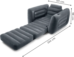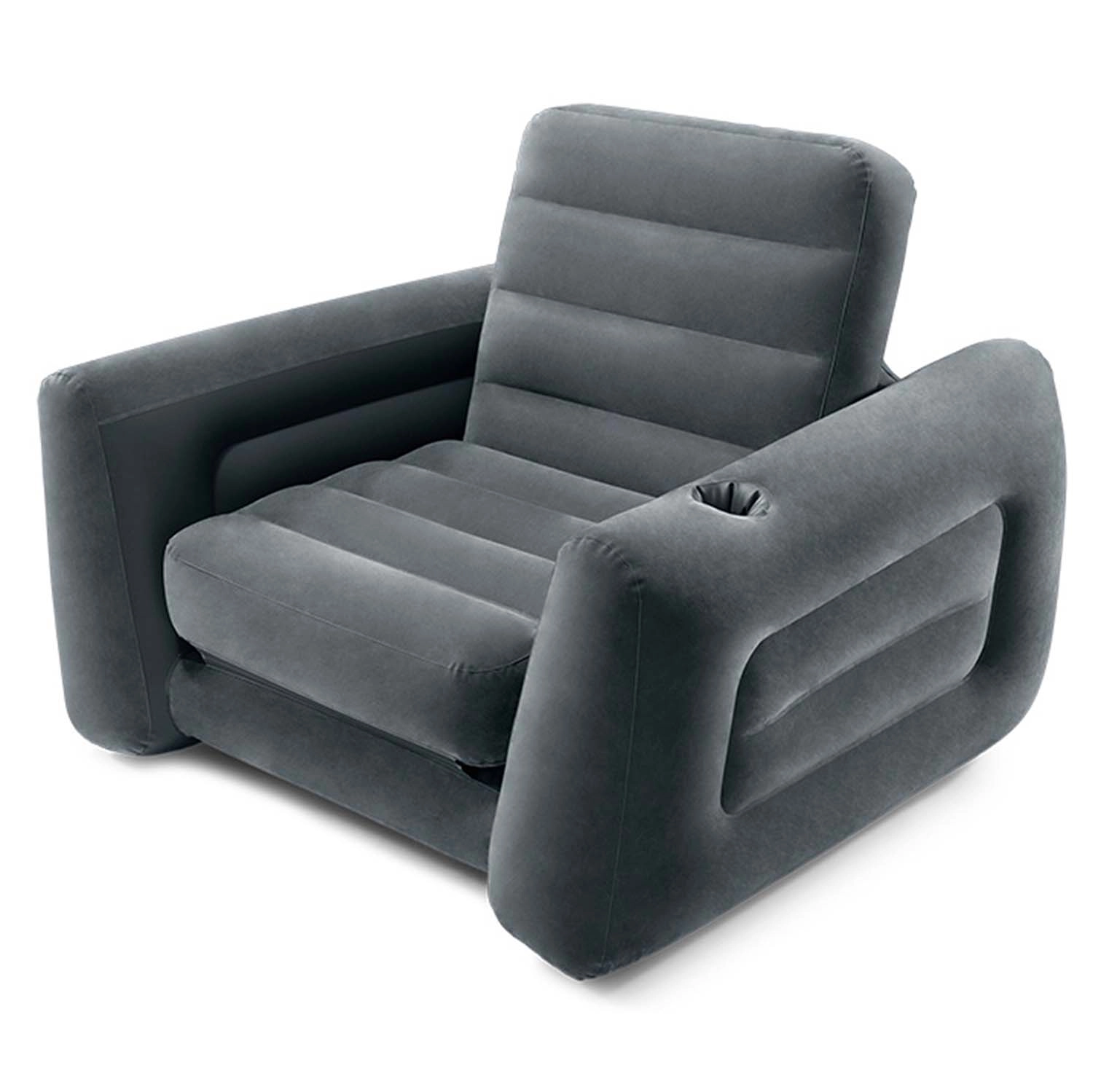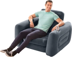 Scaunul gonflabil confortabil și compact oferă un șezut plăcut cu suport pentru băuturi integrat în braț. Ideal pentru relaxare după o zi obositoare.