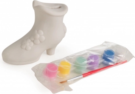 Descoperă farmecul creativității cu pușculița în formă de pantof. Acest set include toate accesoriile necesare pentru propriul tău design și decor. Copiii își pot alege culorile și accesoriile, creând astfel o piesă personală pentru strângerea economiilor.