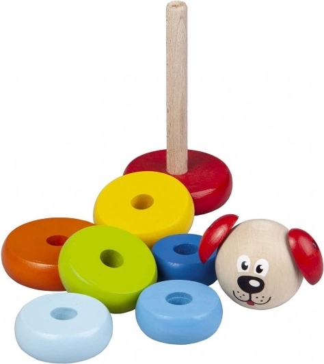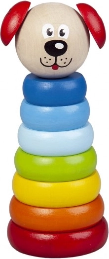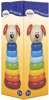 Piramidă Căţel Detoa din bucăţi de lemn sprijină dezvoltarea motricităţii fine şi imaginaţiei la copii de la 1 an. Este fabricată conform standardelor stricte de siguranţă ale UE.