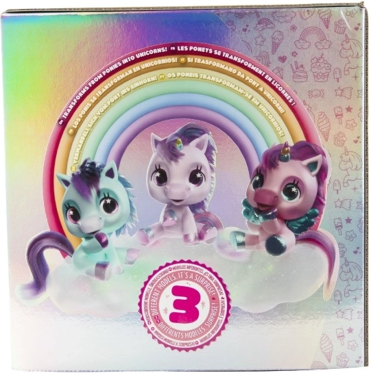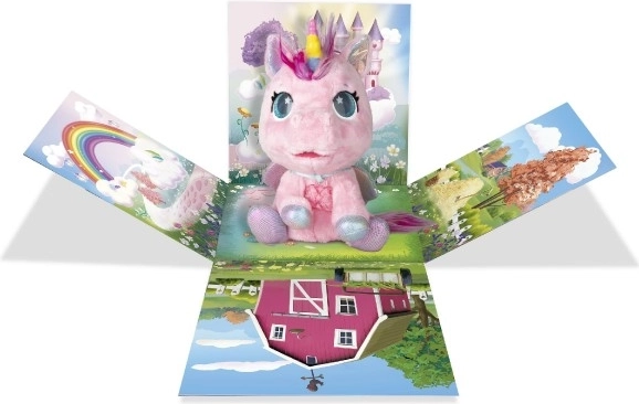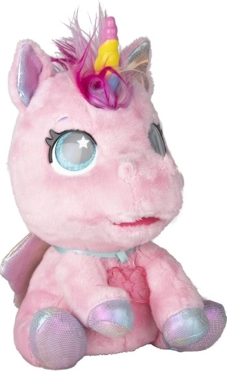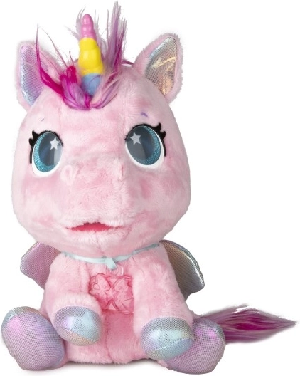 Ponei de pluș interactiv, care va deveni cel mai îndrăgit prieten al tău. Răspunde la atingeri și îngrijire cu peste 30 de sunete și acțiuni – de la nechezat vesel până la fredonări blânde. Datorită transformării treptate în trei etape magice, vei observa cum îi crește cornul colorat și cum poneiul devine un unicorn minunat.