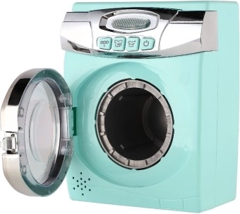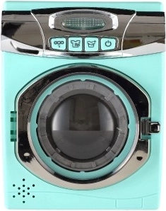 Jucăria mașină de spălat cu ușițe deschizibile și vizor transparent asigură că fiecare ciclu de joc va arăta ca unul real.
