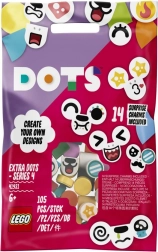 În fiecare plic găsiți 105 piese clasice și imprimate plus 10 piese speciale secrete din 16 designuri posibile. Piesele pot fi combinate liber cu alte seturi LEGO DOTS și cu alte construcții LEGO, încurajând autoexprimarea, motricitatea fină și imaginația.