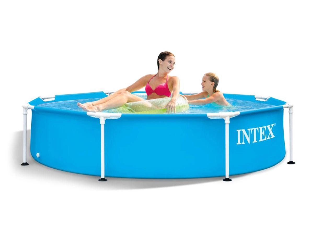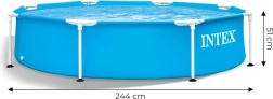 Piscina de grădină INTEX Metal Frame, cu diametrul de 244 cm, oferă răcorire și distracție pentru copii și adulți. Datorită structurii metalice solide și PVC-ului în trei straturi, piscina este stabilă, sigură și pregătită pentru utilizare zilnică în zilele călduroase. Montajul simplu și rapid îți permite să umpli piscina fără a aștepta inutil.