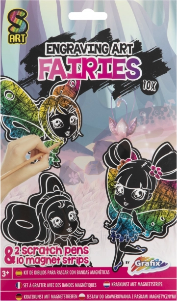 Descoperă setul creativ pentru copii și adulți: magneți răzuibili cu motive de zâne și dinozauri. În pachet găsești 10 magneți și 2 bețișoare de răzuit pentru creații ușoare. Magneții finali se prind pe orice suprafață metalică – frigider, tablă magnetică sau dulap metalic.