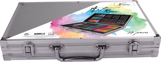 Descoperiți lumea culorilor și a creativității cu Geanta noastră artistică cu carcasă metalică. Acest set conține 79 de instrumente artistice atent selectate, inclusiv acuarele, creioane colorate, pensule, gumă și ascuțitoare, care satisfac nevoile atât ale începătorilor, cât și ale artiștilor avansați. Organizarea și portabilitatea sunt esențiale, iar datorită carcasei metalice cu catarame robuste și mâner confortabil, materialele dvs. artistice vor fi mereu la locul potrivit.